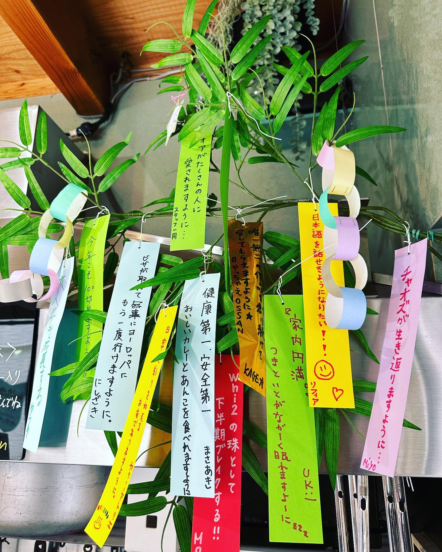 * スパオアスタッフと常連さん、 @カリーノアトリエ さんにも 短冊書いてもらいましたん🎋☆ 書きたい方はどーぞ名乗り出てください☺️ ※七夕はもともと機織りや裁縫の上達を願う行事のため、物が欲しいという願い事ではなく、… 続きを読む *