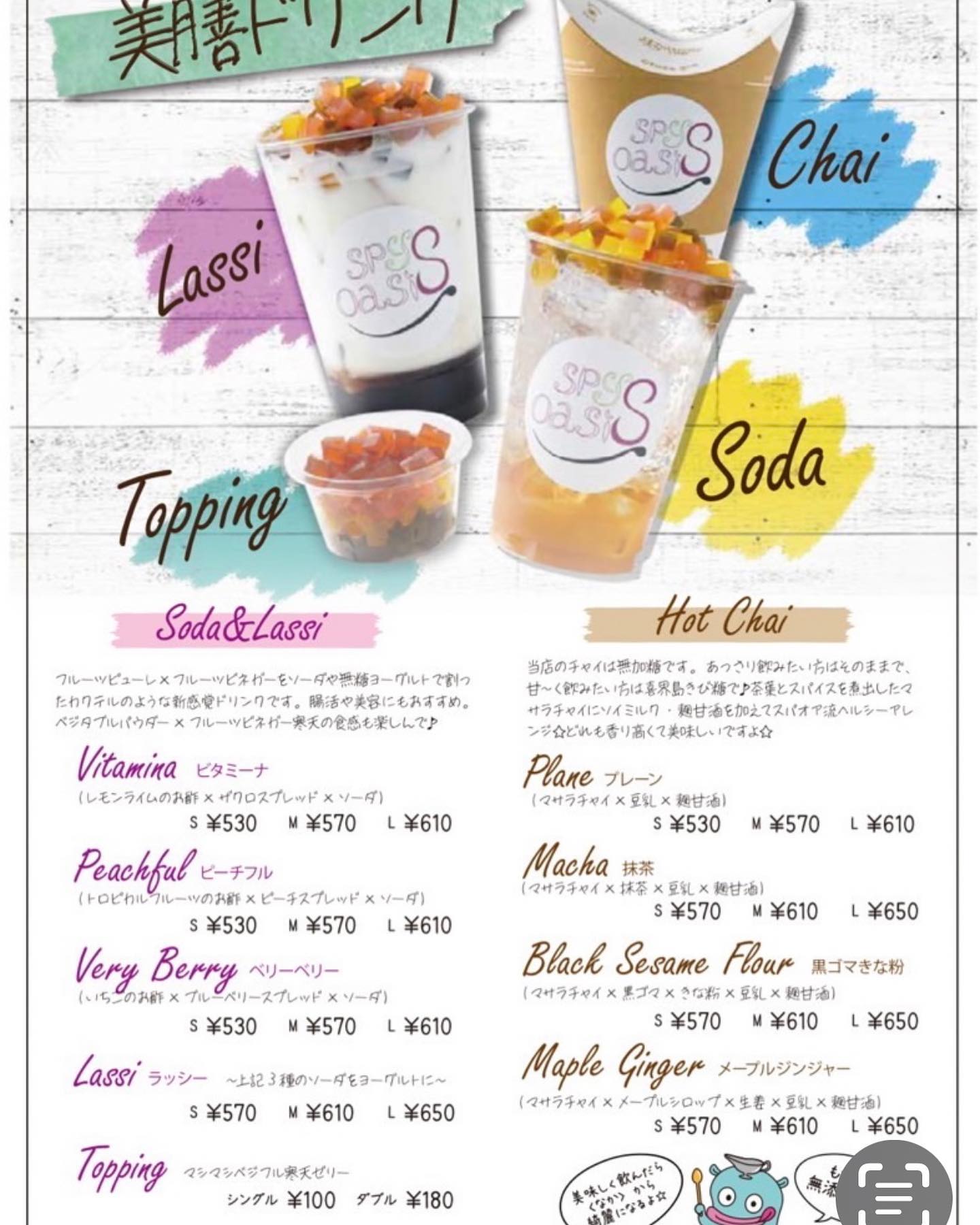 ✴︎ 【美膳ドリンク】 スパイスオアシスでは 独自に開発した 〈美膳ドリンク〉という 無添加&ローカロリーの ヘルシードリンクを、 Eat*in、Takeout、Uber Eatsでご用意しています☆ ※夏季限定で 《バ… 続きを読む ︎