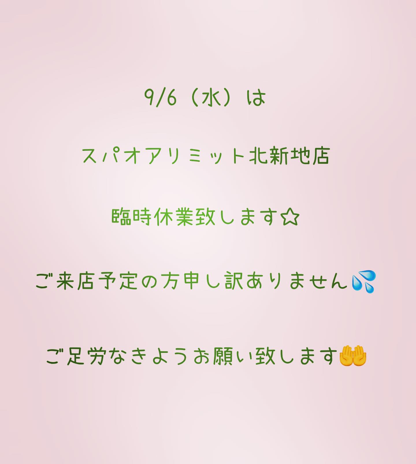 ☆ 【お知らせ】 本日 スパオア難波本店の人手不足の為、 スパオアリミット北新地店は 臨時休業致します🙇 ご足労なきようお願い致します🤲 〜〜〜〜〜〜〜〜〜〜〜〜〜 薬膳スパイスカレー& グルテンフリーバル S… 続きを読む ☆