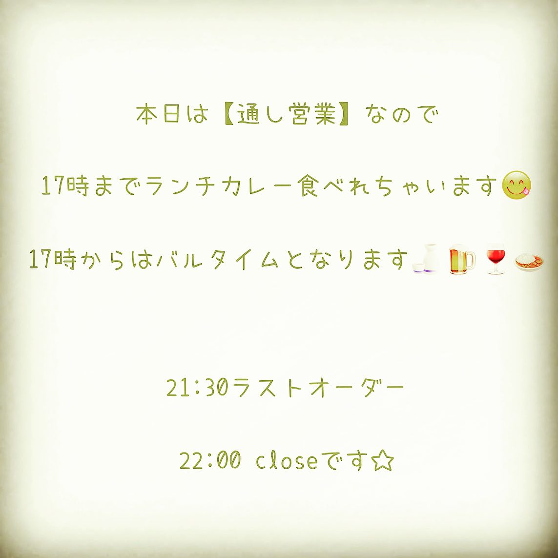 ✴︎ 本日は【通し営業】なので 17時までランチカレー食べれちゃいます😋 17時からはバルタイムとなります🍶🍺🍷🍛 21:30ラストオーダー 22:00 closeです☆ 〜〜〜〜〜〜〜〜〜〜〜〜〜 薬膳スパイスカレー&… 続きを読む ︎