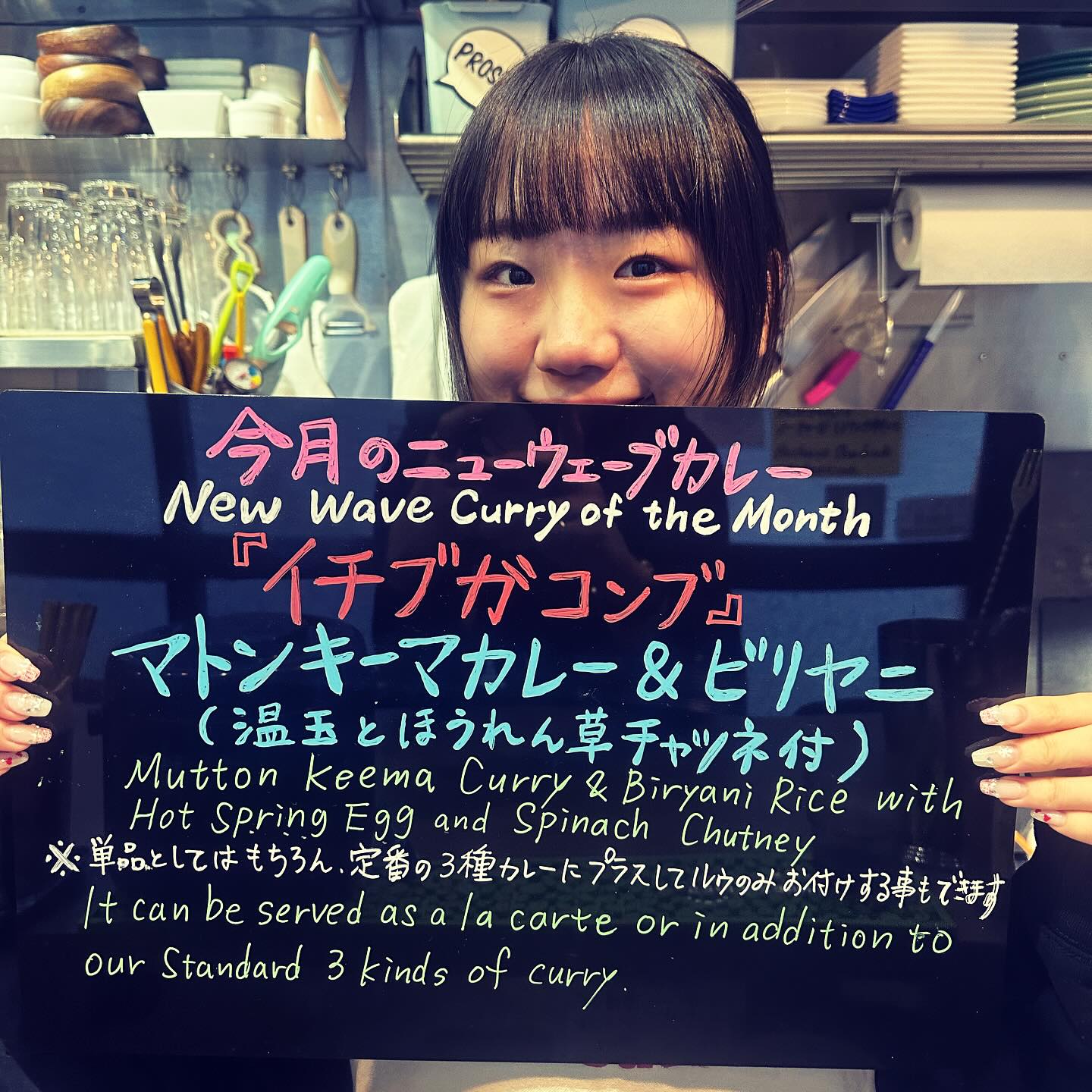✳︎ 今月のニューウェーブカレーが好評です❣️ 今回から従来の《ぷらすカレー》だけではなく、 単品でのご提供も可能になりました🉑🉑🉑 ✳︎ その名も 『イチブガコンブ』 マトンキーマカレー&ビリヤニ (温玉とほうれん草の… 続きを読む ︎